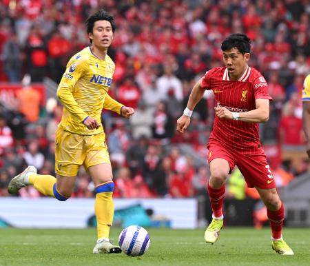 クリスタルパレスの鎌田大地は1―1で引き分けたアウェーのリバプール戦にフル出場した。リバプールの遠藤航は後半24分から出場した。