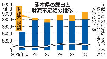 熊本県は1日、2026~30年度の一般会計の収支試算を公表した。台湾積体電路製造(TSMC)など半導体関連企業の進出で県税収が増える一方、渋滞対策の道路工事などインフラ整備費が重荷となり、5年間の累計で685億円の財源不足を見込んだ。前回試算した22~26年度の累計不足額186億円に比べ、約500億円悪化した。