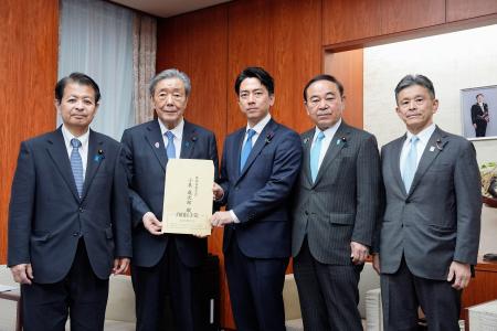 本部長の森山裕幹事長が石破茂首相と小泉進次郎農相にそれぞれ決議書を提出した。森山氏は「農業の大きな転換期で、(従来の農業関係予算とは)別枠の予算が必要だ」と述べた。