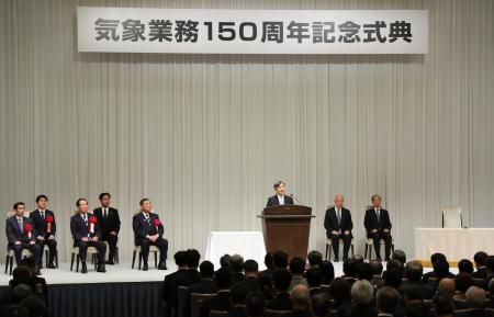 式典には石破茂首相ら約260人が出席。気象業務に功績があった計44の団体や個人の表彰もあり、阪神大震災の教訓伝承に取り組んできた防災学習施設「人と防災未来センター」(神戸市)や雲仙・普賢岳の噴火災害を伝える雲仙岳災害記念館(長崎県島原市)などが対象になった。