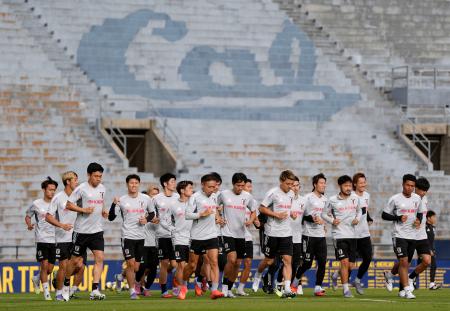 【オークランド(米カリフォルニア州)共同】サッカー日本代表は4日、米カリフォルニア州オークランド近郊で6日(日本時間7日)のメキシコ戦へ向け、一部を非公開にして練習した。公開された冒頭では三笘(ブライトン)前田(セルティック)らが、球回しやクロスからのシュート練習などを行った。