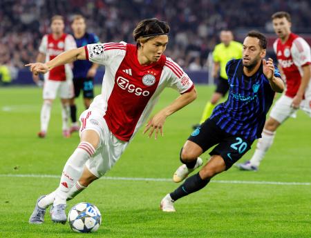 【アムステルダム共同】サッカーの欧州チャンピオンズリーグ(CL)は17日、各地で1次リーグの6試合が行われ、板倉滉が所属するアヤックス(オランダ)は前回大会準優勝のインテル・ミラノ(イタリア)に0―2で敗れ、黒星発進となった。板倉は後半39分まで出場した。