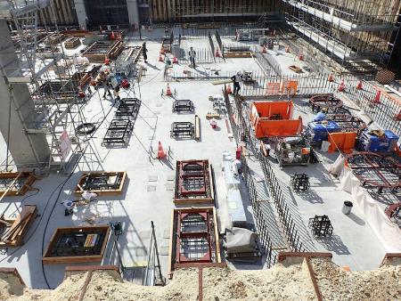 施設は地上2階地下1階で、延べ床面積は約3300平方m。放射線を遮るため厚い鉄で覆った「鉄セル」や、密閉構造で中にある物質をグローブ越しに扱う「グローブボックス」などを設ける。今年3月に着工し、地下1階の工事を進めている。