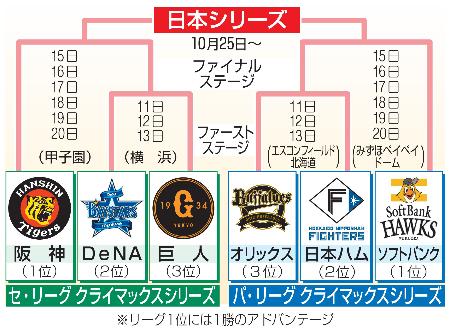 クライマックスシリーズは10月11日からのファーストステージでDeNAと巨人が横浜スタジアムで対戦。その勝者が同15日からのファイナルステージでリーグ覇者の阪神と甲子園球場で顔を合わせ、日本シリーズ進出を争う。