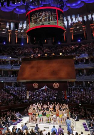 英国の音楽の殿堂と呼ばれる会場に、日本の伝統文化が融合した。日本相撲協会の八角理事長(元横綱北勝海)は「日本の大切な文化である大相撲を、ロンドンの皆さまに披露できることを誇りに思う」とあいさつ。