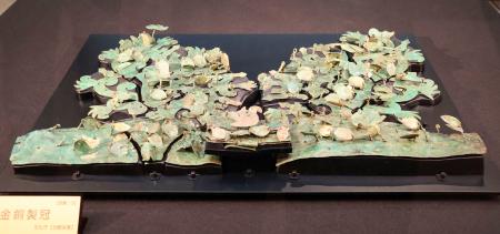 会場では、出土した銅鏡のひびの拡大を防ぐためにアクリル樹脂で補強する様子など、保存科学の仕事もパネルで解説している。研究所の青柳泰介学芸課長は「藤ノ木古墳の遺物が大きくて、きらびやかであることが理解できる」と話した。