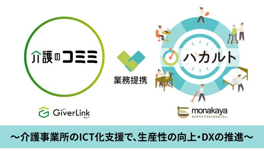 介護サービス事業所向けタイムスタディ・業務改善アプリ「ハカルト」を提供する株式会社最中屋(本社:京都府京都市、代表取締役CEO:結城崇、以下「最中屋」)は、介護業界最大手の口コミ比較プラットフォーム「介護のコミミ」を運営する株式会社GiverLink(本社:宮城県仙台市、代表取締役社長: 早坂 祐哉)と業務提携したことをお知らせします。