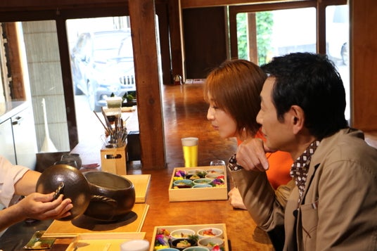 目にも鮮やかな小鉢が並ぶ『健康と五感の和食御膳』はこだわり米が輝く炊き立て土鍋ご飯に絶品味噌汁と焼き魚、さらに絶品〆まであり、1軒目から大満喫の様子の2人。「美味しいものは美味しいんです!」と。