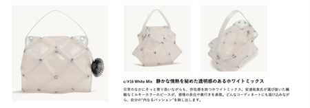 『PASSION』は、情熱の対話から生まれた、“日常を越える”バッグです。「52 BY HIKARUMATSUMURA」デザイナー松村光と、安達祐実氏が打ち合わせを重ねながら、ひとつひとつのピースカラーを選び、新しいフォルムの在り方を追求し創り上げました。情熱と直感が織りなすデザインは、従来のバッグの枠を越え「感情をまとう」という新しい選択肢を提示します。色展開は、「ホワイトミックス」、「ネイビーミックス」、そしてエネルギッシュなレッド×パープル×ピンクを合わせた「レッドミックス」の3色展開。コンパクトながら収納力もある新しいフォルムが、現代を生きる女性のライフスタイルにフィットします。ショートハンドルと、肩掛けタイプのロングハンドルの2本付きで、用途に合わせて自由自在にコーディネート可能です。