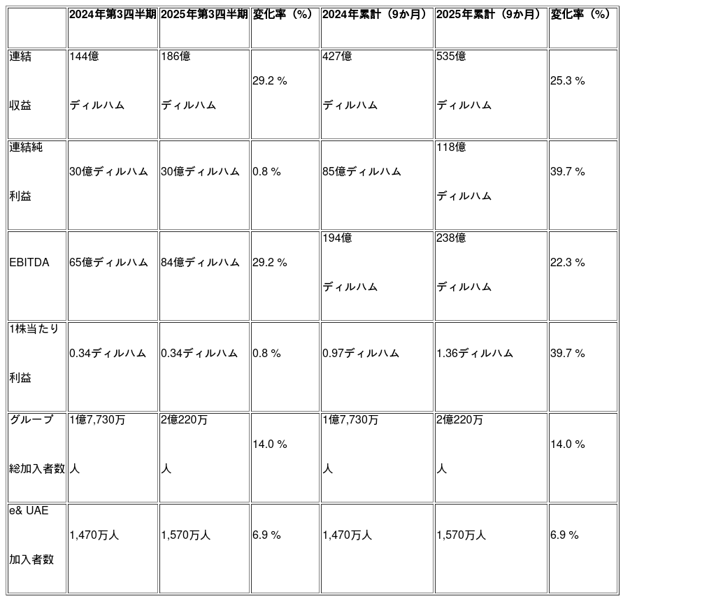 e&、2025年第3四半期も堅調な成長を維持し、連結売上高は29.2%増の186億ディルハムに