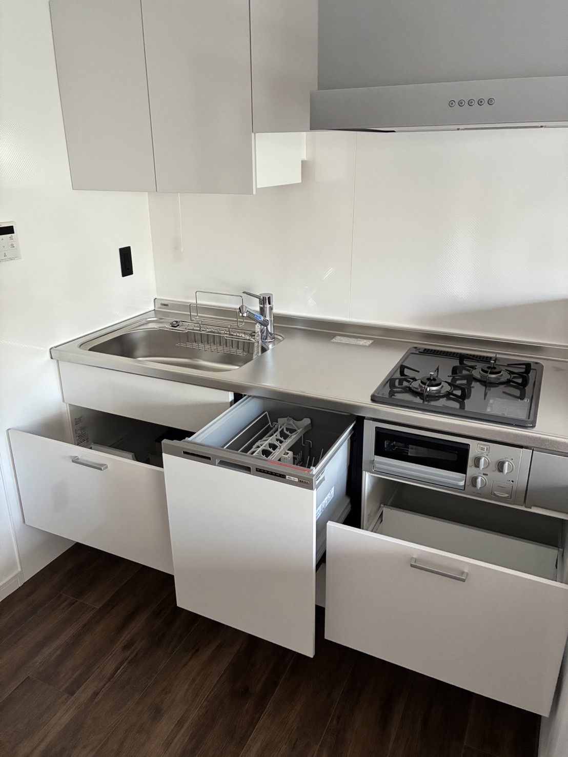 間取り変更(3DK→2LDK)、食器洗浄乾燥機付きシステムキッチン、浴室乾燥機、洗面化粧台、温水洗
