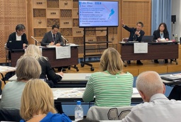 記者団から、滋賀県について「平均寿命はどうやって延びたのか」といった、寿命の延伸に関する質問が複数出ました。それぞれの質問に対して、担当者が通訳を交えて回答。平均寿命が延びていることについて、医療の発展を前提としながらも、滋賀県ではボランティア活動が盛んであることなど、県民が主体的に「健康なまちづくり」に取り組んでいることと相関関係があるのでは、という考えを示しました。