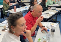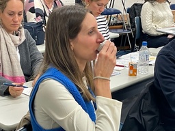 また、「ふなずし」と日本酒を実際に味わってもらうために、試食・試飲として提供。特に「ふなずし」は、多くの欧州記者が初めて口にする味わいに驚きを見せつつも、「すっぱいが味が濃くて美味しい」「日本酒に合う味だ」「オランダにも似た味の魚料理がある」といった感想が寄せられました。単なる“珍しい料理”ではなく、自然環境・伝統文化・健康意識が結びついた滋賀県ならではの“食の知恵”として、記者たちの理解が深まる場面となりました。