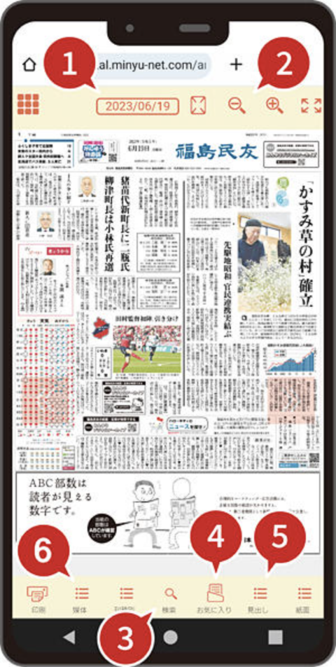 みんゆうプラスでは、その日を含めて7日間の最終版紙面が閲覧できるほか、県内全域の地域版(福島市内・県北、郡山・県南、いわき・相双、会津)も見られます。スマートフォンやタブレットでの同時アクセスは、最大2台までの利用が可能です。手のひらサイズの画面でもズーム機能で文字や写真を拡大して表示することができます。読みたい記事の検索やお気に入りフォルダでのスクラップ保存といった便利な機能も追加料金はありません。