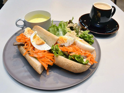 今回初参加する店の一つ、福島市南矢野目の「ROY CAFE(ロイカフェ)」では、1100円でバインミーサンドかクロックムッシュ、1300円ではカルボナーラやひき肉納豆など5種類のパスタから選べる。いずれもコーヒーまたは紅茶が付く。