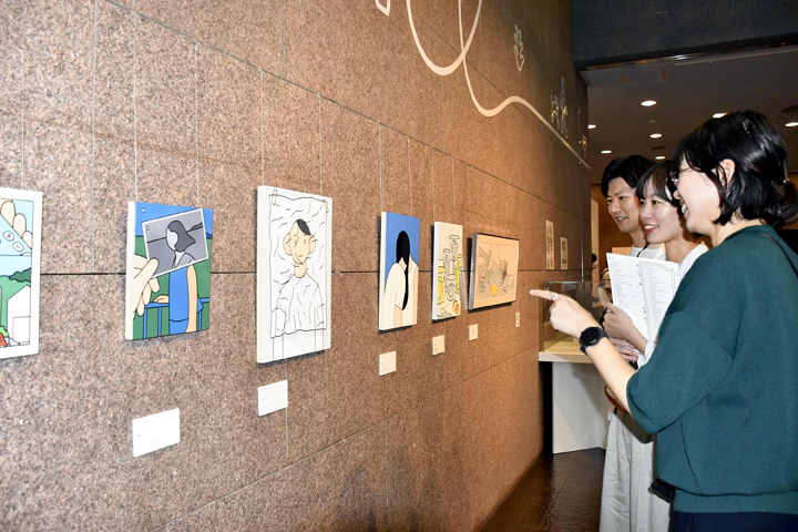 いわき市立美術館。11月3日まで。関東を拠点に書籍の挿絵から企業の広告ビジュアルなど、多数の作品を手がける同市出身のイラストレーターウンピスさんの作品を展示している。公立美術館での個展は今回が初めて。会場には、身近なモチーフを鮮やかな色彩で表現した新作イラストや商品パッケージ、絵本、ポスターなど約70点が並んでいる。観覧無料。開館時間は午前9時30分~午後5時。問い合わせは同館(電話)0246・25・1111