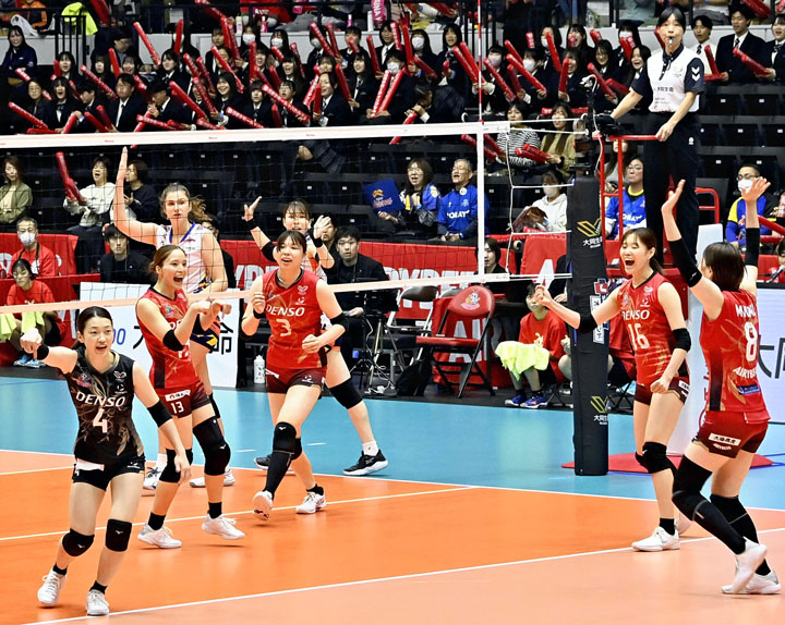 会本拠地移転後で最多となる2410人が来場した。デンソーはアウトサイドヒッターの野田祐希やサブリーナ・デジェズス・マシャドが躍動、東レ滋賀の反撃を許さず快勝した。12日も同会場で東レ滋賀と対戦する。午後1時5分開始予定。