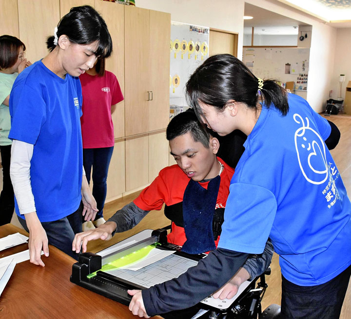 いわき市で重症心身障害児者らを対象としたデイサービス事業を展開するNPO法人ままはーとは本年度、国の補助事業として、18歳以上の重症心身障害者らの社会参加、生きがいづくりのための事業に取り組む。障害者らに牛乳パックを材料とした和紙などを制作してもらい将来的にその販売を目指す事業で、一連の作業の中で社会とのつながりを実感してもらうことを目的としている。
