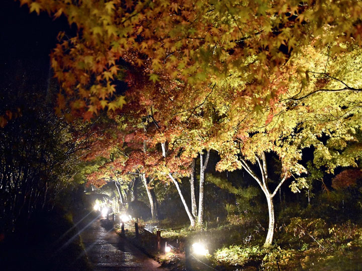 ライトアップ期間は今月9日まで。時間は午後5時15分~同7時半。白河観光物産協会の伊東和雄係長は「週明けが紅葉の見頃。ぜひ足を運んでください」と来園を呼びかけている。