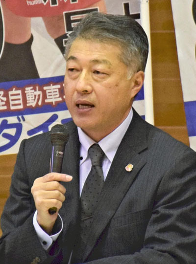また、鈴木氏は場所の選定と併せ、資材高騰を踏まえた建設費の縮減案などを検討していると説明。「場所が確定次第、手続きを進めて工事に入りたい。民設民営、公設民営などさまざまな形があるが、できるだけ早期にスタジアムを完成させたい」と語った。新スタジアムは県産材で造る計画で、県内の森林組合などと連携し木材の確保を進めていることも明らかにした。
