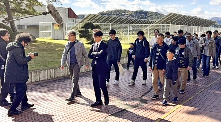 施設を拠点に活動する特撮塾4期生は「出撃せよ!鎧機甲虫クワガッシャー」と題して短編映画製作を進めている。撮影を前に樋口監督らは「顔を引き締めてカメラを見ないようにするのがポイント」とアドバイス。約80人の参加者らは、巨大な虫の怪獣が須賀川の街中に出現した想定で逃げ惑った。当初は緊張していた参加者も田口監督からカットの声がかかると安堵(あんど)の表情を浮かべた。