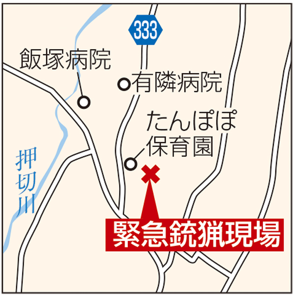 市によると、駆除したクマは雄の成獣で体長85センチ。現場付近は保育園や複数の病院が立ち並び、住宅も点在する地域で、14日ごろから付近の柿の木などで目撃情報が相次いでいた。市は15日午後2時ごろ、住宅から200メートル以内の場所に2基の箱わなを設置したが、その後もクマは付近から動く様子はなかったという。