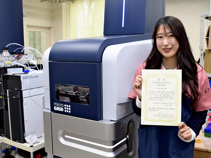 大会は11月29日に青森県の弘前大で開かれた。東北の学生59人が4部門に分かれて発表し、7人が優秀発表賞に輝いた。米田さんは食品・生物科学部門で唯一の受賞者だった。