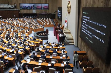 【ソウル共同】韓国国会は5日の本会議で、尹錫悦前大統領の「非常戒厳」宣言を巡る真相や、尹氏の妻金建希氏を巡る不正疑惑を政府から独立した特別検察官が捜査する法案を賛成多数で可決した。国会議席の過半数を握り、4日の李在明政権発足で与党となった革新系「共に民主党」が主導した。
