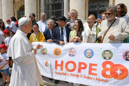 英利さんは謁見後、取材に「戦争やイデオロギーの対立で世界の分断が深まる中、和解することの大切さを呼びかけたい」と語った。企画したNPO法人「アースキャラバン」(京都市)関係者によると、教皇は活動を歓迎していたという。