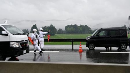 栃木県那須塩原市の東北自動車道で計3人が死亡した4月の逆走多重事故を受け、福井県警と国土交通省近畿地方整備局は、中部縦貫自動車道勝山インターチェンジ(IC、同県勝山市)―九頭竜IC(同県大野市)の上下線を通行止めにして、逆走車の発見や事故防止の訓練を実施した。