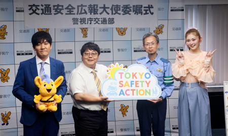 タレントのゆうちゃみさんとお笑いコンビ「タイムマシーン3号」が23日、警視庁の交通安全広報大使に任命され、同庁で委嘱式に出席した。3人は「世界一の交通安全都市を目指すため役立つ情報を発信する」などと宣言。任期の来年3月まで事故防止の啓発イベントなどで注意を訴える。