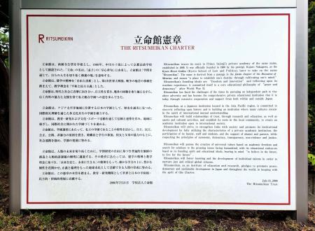 立命館は戦時中、国家主義的な体質が強かったことへの反省から、1960年代の大学紛争の教訓も踏まえ、70年に「平和と民主主義」を教学理念に据えた。憲章は、2000年代に大学や小、中学の開学が続いて学園規模が拡大し、アイデンティティーを広く共有する必要があるとして06年に定められた。