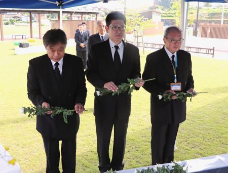 ダムの緊急放流後に肱川が氾濫するなどし6人が亡くなった西予市では、管家一夫市長が黙とうし献花台に花を手向けた。記者団に「防災・減災に力を入れていく決意を新たにした」と語った。住民も献花。無職長本博史さん(78)は「一生忘れられない日。明るく笑顔のあるまちになってほしい」と期待を込めた。