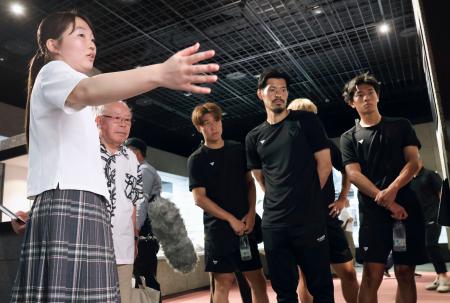 選手や監督ら約50人が参加。日本原水爆被害者団体協議会(被団協)の田中重光代表委員(84)から凄絶な被爆体験を聞いた。その後は、核兵器廃絶を国内外で訴える「高校生平和大使」のメンバーらに案内され、原爆資料館を見て回った。