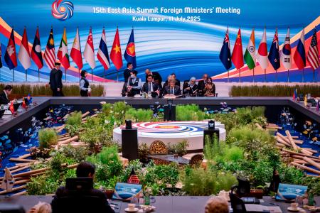 【クアラルンプール共同】東南アジア諸国連合(ASEAN)と日米中ロなど計18カ国が参加する東アジアサミット(EAS)外相会議が11日、マレーシアの首都クアラルンプールで開かれた。国際社会を揺さぶるトランプ米政権の関税政策を念頭に「世界貿易の緊張」に懸念を表明する議長声明案でほぼ合意した。中国は関連会議で米関税政策を「一方的ないじめ」と強く非難し、米国と応酬となった。