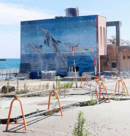 建物は1970年代に珠洲市と新潟県の佐渡島を結んでいたフェリー乗り場の待合室として使われ、航路廃止後にイルカの壁画が描かれ、奥能登国際芸術祭のアート作品となったり、イベントで使われたりしていた。