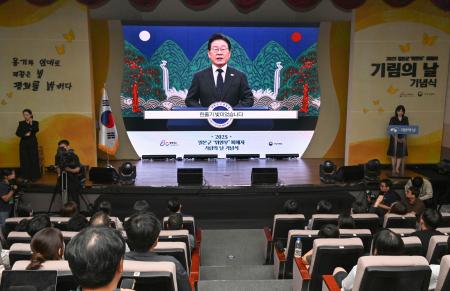 【ソウル共同】韓国政府は14日、旧日本軍の従軍慰安婦問題を語り継ぐ記念日の式典をソウルで開いた。李在明大統領が映像メッセージを寄せ、「(日本の植民地支配から解放された)光復80年になるが、慰安婦問題は完全には解決していない。被害者の名誉が守られるようにする」と述べた。