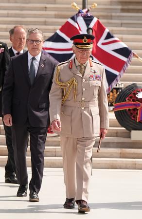 式典には日本と戦った英退役軍人のほか、チャールズ国王夫妻やスターマー首相が出席し、戦没者を追悼。2分間の黙とうをささげ、空軍が儀礼飛行を実施した。過去の戦争を乗り越え、日英の友好関係が続くことを願い、旧日本兵の家族も招待された。