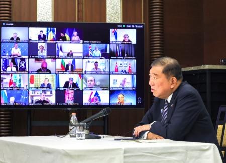 石破茂首相は17日夜、フランスと英国、ドイツが共催したウクライナに関する有志連合オンライン首脳会合に出席し「ウクライナを含める形で議論されなければならない」と述べ、ロシアに前向きな対応を改めて求めた。18日にトランプ米大統領とウクライナのゼレンスキー大統領が会談するのを前に、欧州首脳と意思疎通を図った。
