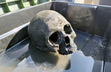 戦時中に朝鮮人を含む183人が犠牲になった山口県宇部市の海底炭鉱「長生炭鉱」で26日、遺骨回収の潜水調査をしている民間団体が頭蓋骨とみられる物を発見した。団体は25日にも骨のような物を回収、通報を受けた県警は人骨かどうか鑑定している。