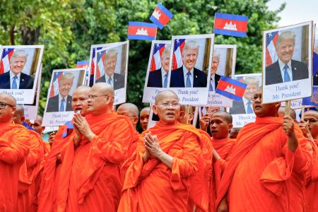 公開した推薦状は「革新的な外交で紛争を解決し大規模な人的被害を防いだ」と高く評価。地元メディアによると10日、2千人を超える僧侶がプノンペンを行進し「ありがとう。トランプ大統領」と記した写真を掲げた。