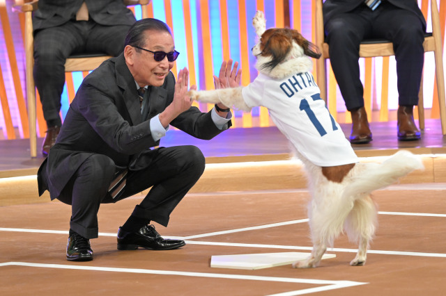 まずは全世界を笑顔にした大谷と愛犬・デコピンの始球式の再現からスタート。デコピンそっくりな“コーイケルホンディエ”の子犬とタモリがハイタッチを決めるというシーンから幕を開ける。