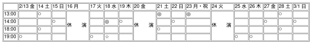 ◎=託児サービスあり。公演1週間前までに要予約・有料(マザーズ:0120-788-222)