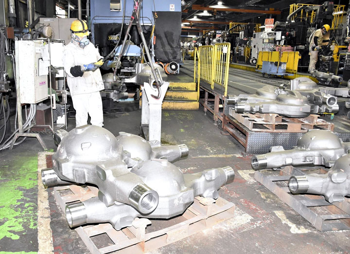 物流の要として日本経済を支える大型トラック。燃費向上や排ガスの低減に向けて部品の軽量化が図られる中、車軸を支える「ハウジング」を中心に、建設用や鉄道車両用の鋳造品を独自技術で製造する。