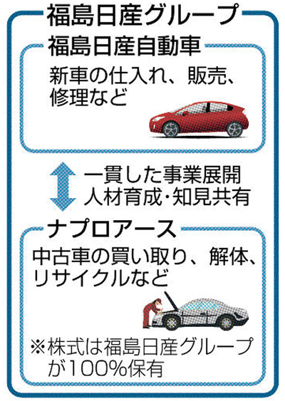 福島日産自動車(福島市)は3日、自動車リサイクルなどを手がけるナプロアース(伊達市)が新たに福島日産グループ傘下に参画したと発表した。新車の仕入れ、販売から中古車の買い取り、解体、リサイクルまで一貫した事業展開で持続可能な資源循環型モデルを目指す。参画は9月16日付。