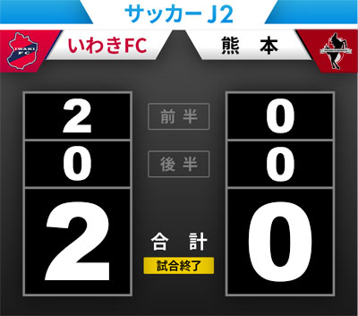 サッカーJ2いわきFC-ロアッソ熊本の試合スコアを速報します。