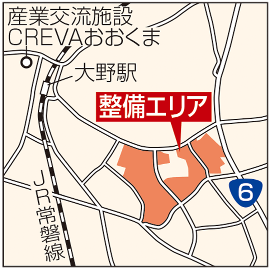 一団地を整備するのは、東京ドーム5個分に相当する西大和久地区と新町地区の約22.9ヘクタール。東日本大震災前は主に田畑で民家が点在していた土地を活用して、産業団地を約9ヘクタール、広場を約5ヘクタール、商業施設を約3ヘクタール整備する。