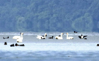 福島県猪苗代町の猪苗代湖北岸に9日、「冬の使者」ハクチョウが今季初めて飛来した。50年以上にわたり観察を続ける「猪苗代湖の自然を守る会」の鬼多見賢さん(78)によると、昨年より3日早いものの、平年並みだという。