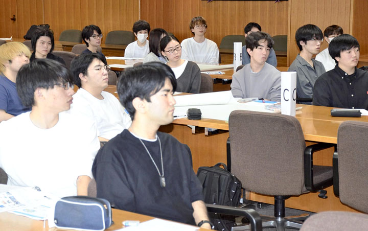 郡山市や電動キックボードのレンタル事業などを手がけるBRJ(東京都)と連携して3年生約30人が取り組む。4日に初回のガイダンスなどが行われ、市都市政策課の高橋勇介さんとBRJの宮内秀明社長が交通事情やサービス環境などを説明した。
