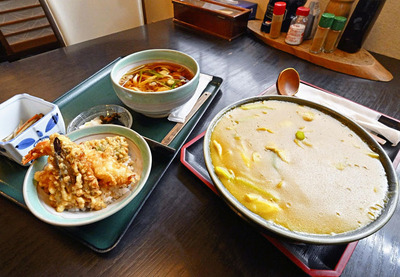 店の看板メニューはうどんだ。こしの強さが受け入れられ、創業以来の一番人気になっている。大きな丼の縁までルーで満たすカレーうどんやミニ丼が付いたセットメニューなど、盛りの良さも特徴の一つ。とんかつやハンバーグなど7種類の中からおかずを選べる「つつみ定食」も好評だ。